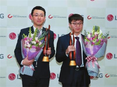 当日,第23届LG杯世界围棋棋王战颁奖仪式在韩国首尔《朝鲜日报》社举行。本届LG杯世界围棋棋王战决赛最终局比赛14日在位于首尔的韩国棋院战罢,中国棋手杨鼎新战胜中国棋手时越,首次捧得世界围棋大赛冠军奖杯。 新华社发