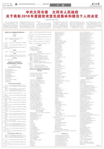 中共大同市委 大同市人民政府关于表彰 2018年度脱贫攻坚先进集体和模范个人的决定