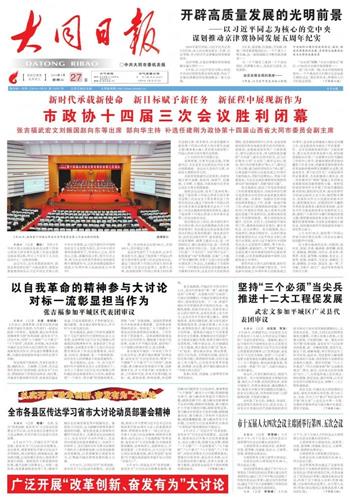 (记者 潘红) 历时3天半的中国人民政治协商会议第十四届山西省大同市委员会第三次会议圆满完成各项议程,昨日上午在市工人文化活动中心一宫胜利闭幕。