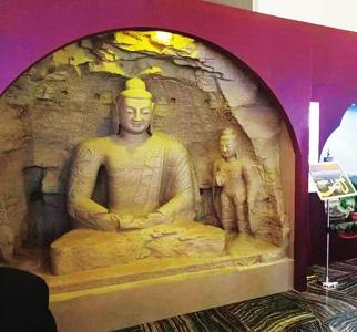 云冈石窟第20窟是云冈最著名的露天大佛,主佛高13.5米,大佛全身比例适称,为北魏平城时期佛像雕刻的杰出代表。此次亮相的复制窟宽2.83米,高2.6米,进深1.5米,复制比例约为1:5。