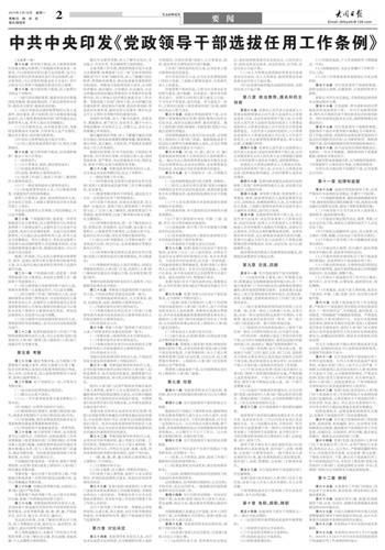 中共中央印发《党政领导干部选拔任用工作条例》