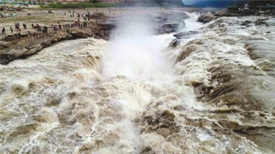 4月9日在山西吉县拍摄的黄河壶口瀑布(无人机拍摄)。近日,受上游水库调节放水和冰凌消融影响,黄河壶口瀑布“桃花汛”水量增大,形成壮观瀑布群。 新华社发(刘宏达摄)