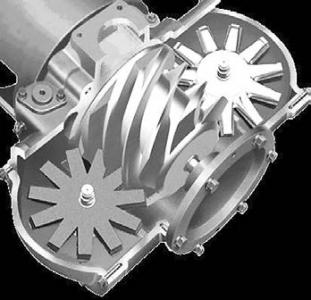 | 单螺杆式空压机单螺杆式空气压缩机由一个圆柱形的螺杆与两个对称配置的平面星轮组成啮合副,装在主机壳内。螺杆的螺槽、主机壳的内壁、星轮的齿面三者围成的空间构成了压缩机的工作容积。电机直接带动螺杆轴转动,螺杆再带动星轮旋转。气体由主机上的吸气口进入螺槽内,经压缩后再由主机壳上的排气孔排出。螺杆上通常有六条螺槽,每个星轮将它分隔成上、下两个空间,各自实现压缩机的工作过程。当螺杆螺槽在星轮齿尚未啮入前与吸气腔相通,处于吸气状态;当螺杆转到一定位置时,星轮齿将螺槽封闭,此时吸气过程结束。吸气过程结束后,螺杆继续转动,随着星轮齿沿着螺槽推进,封闭的工作容积逐渐缩小,实现气体的压缩过程;当工作容积与排气孔口连通时,压缩过程结束。当工作容积与排气孔口连通后,随着螺杆继续转动,被压缩气体由排气孔口输送至排气管道,直至齿离螺槽为止。该种空压机结构合理,具有理想的力平衡性、高效节能、低震动、寿命长、高可靠性等优点,但其中、高频率的噪声较大,啮合副与机壳的几何形状和相互位置精度要求高,星轮维修或更换周期也较短。 |