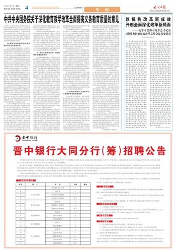 中共中央国务院关于深化教育教学改革全面提高义务教育质量的意见