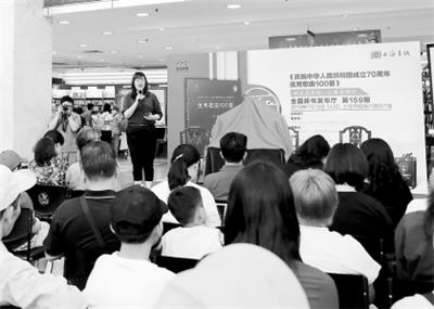 7月15日拍摄的新书首发仪式现场。 当日,由上海音乐出版社出版的《庆祝中华人民共和国成立70周年优秀歌曲100首》新书首发式暨歌咏会在上海书城举行。 新华社记者方喆摄