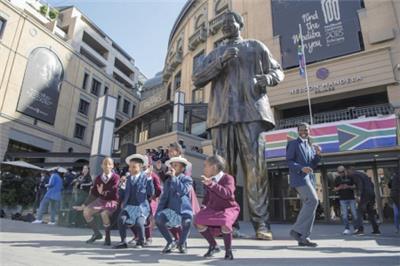 7月18日,在南非约翰内斯堡,学生们参加曼德拉国际日纪念活动。当日是“纳尔逊·曼德拉国际日”,南非多地举办了形式多样的纪念活动。 新华社发