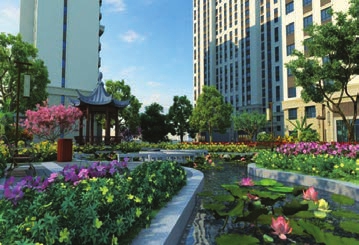 为此,项目建设团队多次外出取经,学习各家之长,打造出自己的特色。碧水云天·新尊府采用俊朗且富有底蕴,彰显产品浓厚文化感的建筑立面;可8度抗震的框架剪力墙结构,匠心营造建筑面积约96-186平米奢适洋房、瞰景小高、滨水府邸住宅。项目独具特色的新中式园林,汲取苏州园林“虽由人造,宛自天开”法则精要,主入口设置景观照壁,八字景墙,左右两侧铜狮子威武矗立,取其趋吉避凶、纳福迎祥之意。同时也采用了苏州园林惯用的“欲扬先抑”的造景手法,1500平米水系蜿蜒其中,在中轴水景之上对称布局叠水平台、汉白玉拱桥,并随形就势排布水畔驳岸等景点,营造移步换景、自然谧境的视觉享受,为生活平添闲适与诗意。整体园林设计借鉴古典园林的造园手法,汲取现代的景观元素,完美诠释新中式园林的精要,展现出自己独特的魅力。
