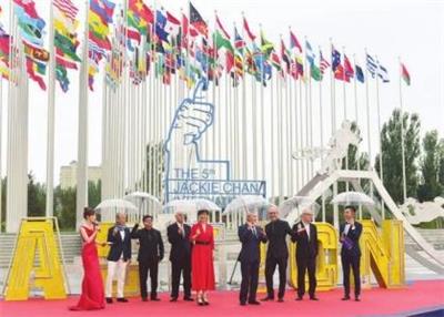 (记者 陈杰) 7月27日下午,第五届成龙国际动作电影周闭幕式暨颁奖典礼举行前,一众明星身着靓衫,神采奕奕在大同体育中心广场进行了红毯秀展示。每一次挥手、微笑,都引来观众热情的回应;而与观众的握手、签名,更是引发粉丝此起彼伏的尖叫,一时间,现场气氛十分热烈。