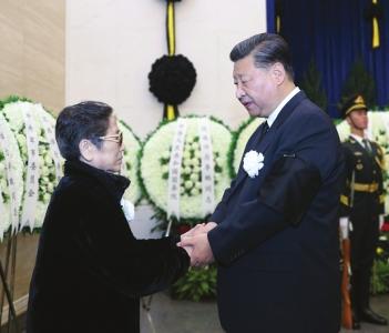 习近平李克强栗战书汪洋王沪宁赵乐际韩正王岐山江泽民等到八宝山革命公墓送别。胡锦涛在外地送花圈表示哀悼