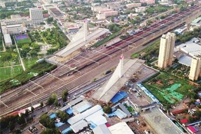 7月30日凌晨,经过90分钟惊心动魄的空中“飞越”后,由中建交通建设集团有限公司施工的重达8万余吨超长转体双翼斜拉桥——河北省保定市乐凯大街横跨京广铁路大桥实现空中完美转体合龙,打破了世界桥梁建设史上转体重量、转体跨度、转铰直径的纪录。 新华社发