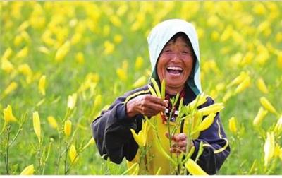 骄阳似火,丰收的喜悦亦如这骄阳来得热烈。近日,云州区忘忧大道两侧成片的黄花随风摇曳,美不胜收,金灿灿的黄花不仅成为当地乡村旅游的亮点,也是农民脱贫致富的主导产业。图为一位农民正在兴高采烈地采摘黄花。