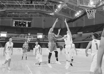 图为太原市重点体育学校队与山东济南市体校队在比赛中。