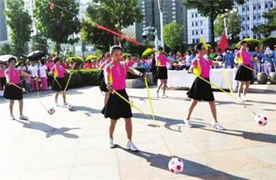 今年8月8日是我国第11个“全民健身日”。近日,由平城区卫体局、老体协主办的2019年“全民健身日”带球展示赛在迎宾广场举行。该活动的主题是“牵手全民健身,拥抱健康平城,创建文明城市,喜迎二青盛会”。