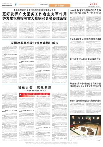 中宣部、国家卫生健康委联合发布2019年“最美医生”先进事迹