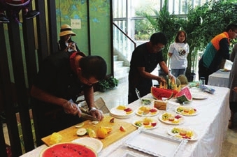 在这里,平常的水果通过梳妆打扮成各种凹凸的造型,练就了“七十二变”。雕刻家用巧手雕刻出各种美美的造型,雕刻的艺术,让现场的嘉宾真是既饱了口福又享了眼福。