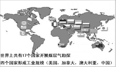 。美国、英国、德国、俄罗斯等国煤层气的开发利用起步较早,80年代初美国开始试验应用常规油气井(即地面钻井)开采煤层气并获得突破性进展,标志着世界煤层气开发进入一个新阶段。世界上共有17个国家开展煤层气勘探,目前,美国、加拿大、澳大利亚、中国四个国家已经形成了工业规模。
