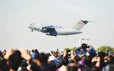 10月月17日,大型运输机运-20进行飞行展示。 当日,庆祝人民空军成立70周年航空开放活动在吉林长春开幕。空军多支飞行表演队、跳伞表演队共舞蓝天,歼-20、运-20、歼-16等多款主力战机展翅苍穹,空降兵和航空兵作战部队派出精锐力量展示作战对抗,多型武器装备大规模、全系统抵临现场。人民空军以前所未有的强大阵容亮相长春,颂扬中国航空事业110年发展成就,以开放、自信的姿态为即将到来的人民空军70华诞献上大礼。新华社发