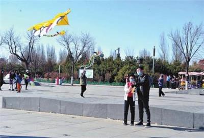 随着疫情缓解以及天气回暖,一些市民走出家门踏青游玩。图为3月22日,一位家长带着孩子在文瀛湖放风筝。 本报记者 于宏摄