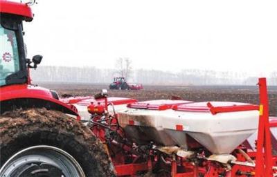 4月20日,黑龙江省铧镒农机专业合作社联社的拖拉机在哈尔滨市双城区播种玉米。近日,黑龙江省春播生产工作从南到北陆续展开。新华社记者 王松摄