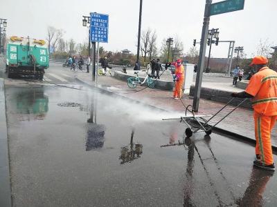 从本月初开始,平城区环卫处开展道路大清洗活动,出动洗路车、洒水车、雾炮车等对辖区范围内主次干道、非机动车道、人行便道、过街天桥进行深度清洗,彻底清理冬季积尘,达到路面见本色、设施洁净的标准。同时,还对一些建筑工地周边车辆通行频繁的路段加大清扫保洁力度,及时洒水降尘,减少扬尘污染,营造洁净的城市环境。截至目前,已完成1400多万平方米道路、7座跨河桥、13座过街天桥的清洗。 曹飞摄