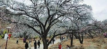 明媚春光催开了守口堡的朵朵杏花,细细密密的花骨朵挂在枝头,层层叠叠地汇成一片片粉白色的海洋。一边是古老的长城,日复一日地演绎着历史沧桑;一边是芬芳的花朵,年复一年地吐蕊绽放,硕果盈枝。长城和墩台、杏林和杏树,沧桑与烂漫的画面跃然呈现,构成了一幅沧桑而不失率真、厚重而不失浪漫、悠远而又让人触手可及的完美画境,漫步林间如同徜徉景中,让人仿佛置身于世外桃源。