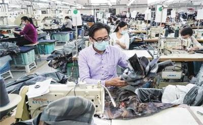 4月24日,方伟星(前)在淮安新芳杰高科服装有限公司生产服装。 江苏省淮安市在全市设立41个就业扶贫车间、培训扶贫基地和创业扶贫基地,为低收入农户提供长久稳定的工作岗位,目前已解决1482名低收入农民的就业。 新华社记者杨磊摄