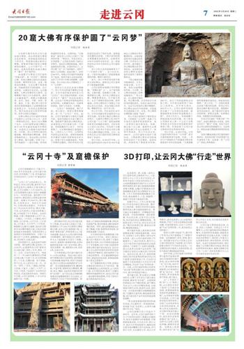 有了窟檐保护的五华洞,显现出北魏皇家寺院恢弘大气的风范。整个窟檐建筑从立柱到屋顶,从斗拱到门窗,从外观到色调,继承了北魏时期特有的凝重和古朴,成为云冈石窟一道全新的视觉景观,开创了国内石窟寺维修保护的先河。