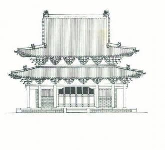 宫内平面依岩,呈不规则形状。后部凹进,柱网配置的多寡是根据上部梁架结构以及地形的需要而定。和建筑《法式》不能对比,共用柱子17根,其中廊柱9根,檐柱6根,后金柱(内柱)2根,后者的用材很小,支撑作用不大。由于使用断面较大的三步梁(七架梁),故减去宫内前部金柱2根。南檐山面巧借岩体暗托,又减去廊柱1根。这种依岩做法在大同明代重檐建筑当中是仅有的一例。宫内后部置神龛,龛内北岳大帝和妇人居中端座,左右侍从并列。各像神态自然,体形秀美匀称,为明代原作。
