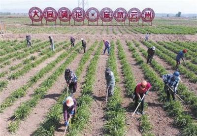 在云州区有机黄花标准化种植基地,农民们正在耕种“致富花”。  王中勋摄