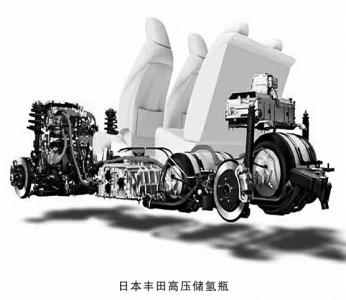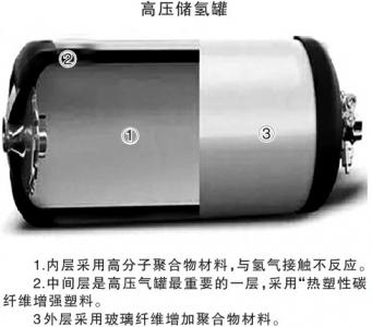 氢瓶是高压气态储氢的储存装置。储氢瓶的设计,材料采用铝合金内胆碳纤维缠绕的高压储氢瓶,重量轻,单位储氢密度高,具有优良的韧性和抗撞击性能;采用整体式设计,整个框架通过3根横梁和2根纵梁将氢气集成到一个框架总成中,保证在碰撞时,高压储氢罐的动态位移不会太大,避免断裂;氢系统管路中大多采用316不锈钢材质的管路,其在氢气中的拉伸性能、疲劳性和裂纹扩展性能出众,具有较好的防氢脆性能;燃气管排出氢气的方向是顺延车底部的前后方向,可以保证车舱内不被火焰殃及;成本占储氢系统的1/3左右,未来向高压化、轻量化、低成本的方向发展。典型应用丰田Mirai高压储氢罐采用三层结构,内层是密封氢气的树脂衬里,中层是确保耐压强度的碳纤维强化树脂(CFRP)层,表层是保护表面的玻璃纤维强化树脂层。