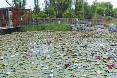 近日,在西京街绿轴景观带音乐喷泉广场西侧的池塘内,清澈的水面上一朵朵睡莲花竞相绽放,不仅让公园的景色更加宜人,也为在此休憩的市民带来了夏日的清凉。 本报记者戎禹仁 摄