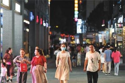 近日,位于浙江省湖州市中心的衣裳街历史文化街区、爱山广场商业步行街的人气逐渐回升,不少市民选择在夜间来此休闲、购物,成为夜幕下一道亮丽风景线。新华社记者 黄宗治摄