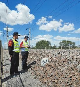 为确保线路安全畅通,大同铁路公安处湖东车站派出所近日组织民警对管内线路进行隐患排查。张小虹摄