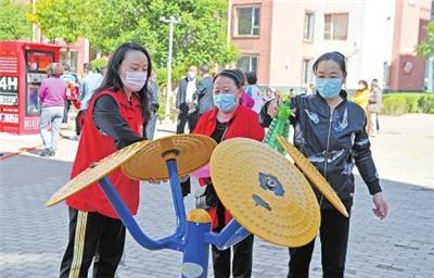 连日来,平城区振华南街街道惠民南院社区的工作人员在社区开展文明习惯养成行动、传染病防控和健康知识普及行动等系列活动,以增强居民的卫生意识和文明意识。图为工作人员在为社区的健身器材消毒。 本报记者于宏摄