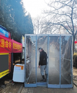 在平城区新建南路街道北馨园社区,由团市委捐建的疫情防控新设备——消毒棚启用后赢得了居民们纷纷点赞。据介绍,进入小区的居民有序排队,逐一检测体温后,依次通过一座“烟雾缭绕”的疫情防控消毒棚。消毒棚由白色硬塑料膜搭建而出,长4米、宽2米,外设一消毒液雾化装置,两个雾化喷射口通向棚内,启动开关,自动喷射由二氧化氯泡腾片(无毒性)稀释而成的消毒液2分钟,消毒液喷到空中,在消毒棚中形成凝雾,有效地对进入人员进行全方位的消毒,极大地提高了防控效果。