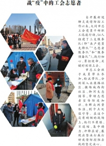 自疫情防控阻击战打响以来,大同市各级工会组织引领80万名职工第一时间投入战“疫”行动,筑牢群防群控防线。在不同领域,全市广大职工主动响应党和政府的号召,或奋斗在最前线,或宣传防疫知识,或确保物资供给,为战胜疫情汇聚八方力量,充分体现了职工担当和工会作为。