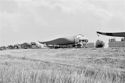 近日,6辆搭载70米长风力发电机叶片的重型卡车奔驰在哈萨克斯坦境内,向位于哈西北部的科斯塔奈州50兆瓦风电项目工地行进。该批风机叶片4月底从中国天津发运,6月15日从霍尔果斯口岸出境,运输全程超7000公里。图为在哈萨克斯坦卡拉干达至努尔苏丹段公路,卡车车队运输风机叶片。 新华社发