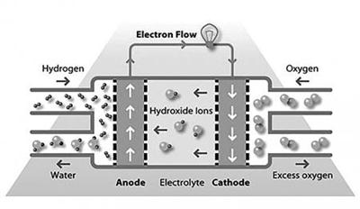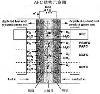 碱性燃料电池(alkaline fu-el cell,AFC)由法兰西斯·汤玛士·培根(Francis Thomas Bacon)发明,以碳为电极,通常用氢氧化钾或氢氧化钠为电解质,导电离子为OH-,燃料为氢。是以碱性溶液为电解质将存在于燃料与氧化剂中的化学能直接转化为电能的发电装置。是最早获得应用的燃料电池由于其电解质必须是碱性浛液,因此而得名碱性燃料电池。在1973年成功地应用于Apollos登月飞船的主电源,使人们看到了燃料电池的诱人前景。碱性燃料电池的电能转换效率为所有燃料电池中最高的,最高可达70%。碱性燃料电池的工作温度大约80℃。因此,它们的启动也很快,但其电力密度却比质子交换膜燃料电池的密度低十来倍,在汽车中使用显得相当笨拙。不过,它们是燃料电池中生产成本最低的一种电池,因此可用于小型的固定发电装置。如同质子交换膜燃料电池一样,碱性燃料电池对能污染催化剂的一氧化碳和其它杂质也非常敏感。此外,其原料不能含有二氧化碳,因为二氧化碳能与氢氧化钾电解质反应生成碳酸钾,降低电池的性能。
