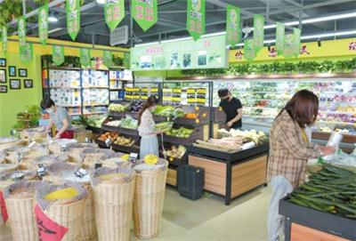 回放镜头三:民和社区首家直营店内,居民们排队结账购买物美价廉的新鲜蔬菜。