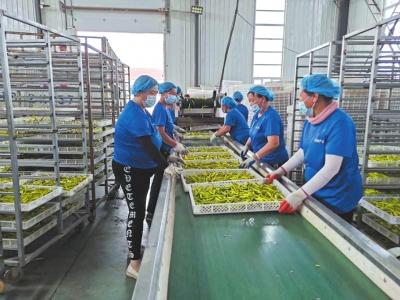 大同三利农产品公司就是一家集黄花、小杂粮等农产品种植、收购、加工、销售为一体的企业。7月1日早上,在宽敞的加工车间里,穿着统一工作服的50多名工人站在传输带两旁,把刚从地里摘下的一万斤黄花原菜清洗、筛选、摆盘、装车推入烘干房,一气呵成实现黄花不落地出成品。三利农产品公司工作人员自豪地介绍说,这几天还不到采摘旺季,公司有专车去唐家堡村地里收购,等过个十来天大批量黄花集中采摘,就会有农民自发来送货,到时候规模比这大多了。三利公司通过“基地+农户+公司”一体化经营模式,与全区10个乡镇的2.1万户农民签订种植、收购合同,每年收购量达2000吨,带动6000户农户种植黄花。尤其是每年的6月底至8月中旬黄花采摘旺期,可带动周边乡镇的400多贫困农民工增加采摘收入。公司还发展创造更多的就业岗位、帮扶农户提供生产工具、培训种植加工技术引领农户致富增收。与麦德龙、永辉、深圳尚古堂等商超也都建立了长期战略合作关系。“这几天,黄花网上订单不断,每天在京东、淘宝、天猫等电商平台的订单由以前的80至100单增涨到现在的800单以上,销售干黄花800多斤。”三利农产品公司董事长庞乃东信心十足地说。