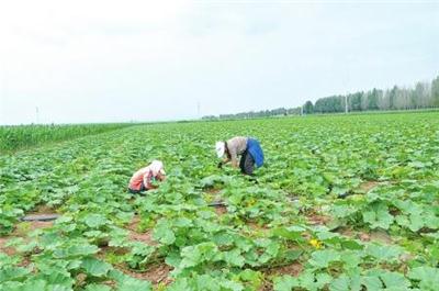 云州区在御河东岸的杜庄乡落阵营、利仁皂、周家堡三个村的河湾地全力打造集都市采摘农业、休闲农业、体验农业为一体的万亩都市蔬菜基地,让农业直接面对城市的消费者,增加农业边际收益,巩固扶贫成果。图为村民在云州区杜庄乡“落利周”万亩蔬菜种植基地打理南瓜条蔓。 曹雪春摄