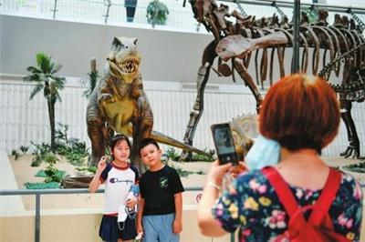 时值暑假,不少市民带着孩子走进天津自然博物馆参观体验,感受自然科学的独特魅力。图为7月14日,小朋友在天津自然博物馆留影。