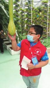 “种在管子里的甜菜、栽种在盆中的线椒、爬满架的丝瓜,还有玲珑可爱的灯笼瓜……”是日,沿着参观路线,小记者们参观着蔬菜,听导游讲述不同的农业知识。参观中,许多通过科学嫁接技术孕育出的作物,改变着小记者的认知观,带他们进入神奇的世界,而这份神奇延续到之后的各个展厅。在花果漫游展厅,领略花卉、果树为载体的世界;杂粮部落展厅,通过实物标本探寻旱稻、高粱、小麦等的风采;草本之恋展厅,认识黄芪、田七、丹参等……6个展厅不同的主题参观,让小记者们切身感受到现代农业产业发展的多元化。之后在房博会的采访中,老师的讲解融入一问一答环节,为小记者梳理展会信息,带领小记者深入感受地产经济的发展。