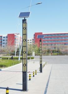 大同大学安装的太阳能路灯,不仅为学校节约了电费开支,而且促进节能减排。图为该校南校区校门外安装的太阳能路灯。 本报记者 戎禹仁摄
