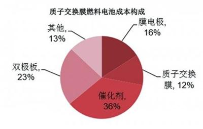 复合膜可改善全氟磺酸膜导电率低及阻醇性差等缺点,赋予特殊功能,成本较低,但制备工艺复杂,有待改善。目前,质子交换膜——全氟磺酸型膜为主流,复合膜、高温膜、碱性膜是未来发展方向。目前科慕(原杜邦)Nafion质子交换膜价格为$120/kW,按照每辆燃料电池汽车系统额定功率为36kW计算,每辆汽车质子交换膜成本为$4320/¥29000以上,严重制约了中国燃料电池汽车产业的发展。2016年,电子科技大学何伟东与团队研制出新的制浆工艺和成膜工艺,出产的PEM质子传导率为杜邦Nafion117的1.78倍,成本仅在十分之一左右。2016年上海交通大学张永明获AFCC技术达标奖,其研发的PEM保持高性能前提下,使用寿命达6000h以上。东岳集团实现了性能突破,使用寿命突破了20000h,已建成年产50万吨PEM所需的全氟磺酸树脂生产装置,可满足2.5万辆FCV所需。