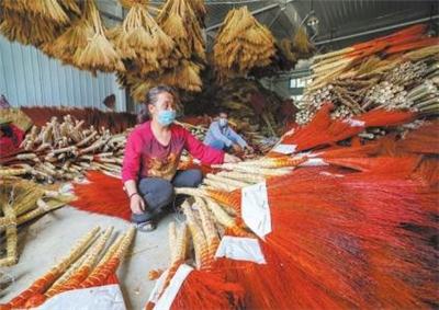 市场打开后,他们又继续加大投资。县里出资建起1000多平方米的扫把工厂,员工近百人,其中多半是贫困户。产品也从单一的高粱扫把发展到竹子扫把、芨芨草扫把、扁丝大扫把及拖把等产品,如今年销售额超500万元。