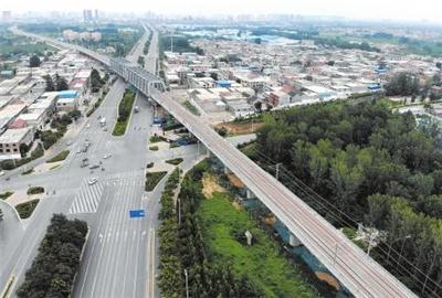 新建太焦铁路穿过焦作市区(7月25日摄,无人机照片)。