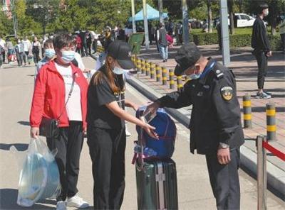 市卫生学校2020级新生9月8日开始分批报到入学。据了解,市卫生学校在常态化疫情防控的背景下,制定了针对今年新生入学报到的应对措施,尽可能减少人员聚集,实行了分批报到入学,在校门口安排志愿者指导家长和新生提前准备好健康码和行程卡。图为工作人员正在为入学新生检测体温。