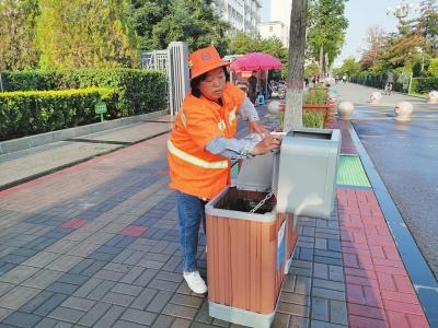 谈到近几年来发生在身边的变化,郭丽荣欣喜地和记者聊了起来。她告诉记者,从1984年开始做环卫工人,当时的月平均收入只有几十元,而现在郭丽荣是一名有编制的长期工。“我现在基本工资加上日常考勤这些绩效工资,平均每月收入3500元左右,算很可观了,我真的是越干越有劲头了。”喜悦之情洋溢在郭丽荣的脸上,话语间她对未来充满了期待。随着城市快速发展,环卫清扫工作机械化水平也越来越高了,郭丽荣告诉记者,“以前保洁全靠人工力量,现在我们有大型的垃圾清运车和垃圾清扫车,还有保洁三轮车等清洁工具。有了现代化清洁工具,我们现在的劳动强度也减轻了不少。环卫处给我们每个人购买了人身意外保险,虽然不希望用上,但毕竟有了保障。”说起这些可喜的变化,郭丽荣和同事们都十分欣慰。