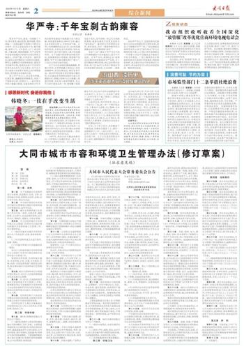 步出华严寺山门,这座依契丹民族崇日文化而坐西朝东的古刹的东面,即是大气典雅的华严广场,广场东侧就是被梁思成先生誉为“海内孤品”的天宫楼阁的放大版,让人得以更好地领略这一代表着11世纪中国建筑艺术最高水平的木作典范。广场上精美的音乐喷泉则是依汉代连枝灯形象建造,两排面容和祥、体态端庄侍女手持长柄宫灯左右排列,使远逝的年代与欢乐的场景构成一幅和谐的画面。